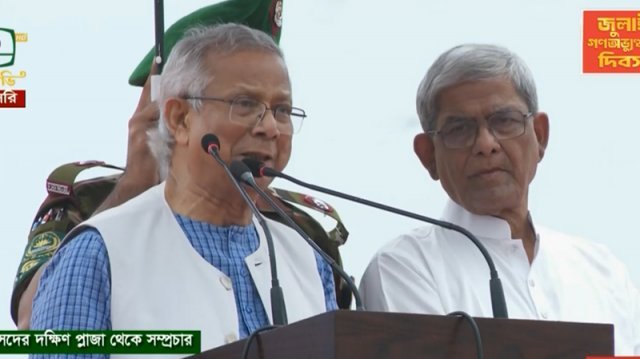 অন্তর্বর্তী সরকারের প্রধান উপদেষ্টা ড. মুহাম্মদ ইউনূস জুলাই ঘোষণাপত্র পাঠ করেছেন। মঙ্গলবার (৫ আগস্ট) জাতীয় সংসদের দক্ষিণ প্লাজায় এই ঘোষণাপত্র পাঠ করেন তিনি।