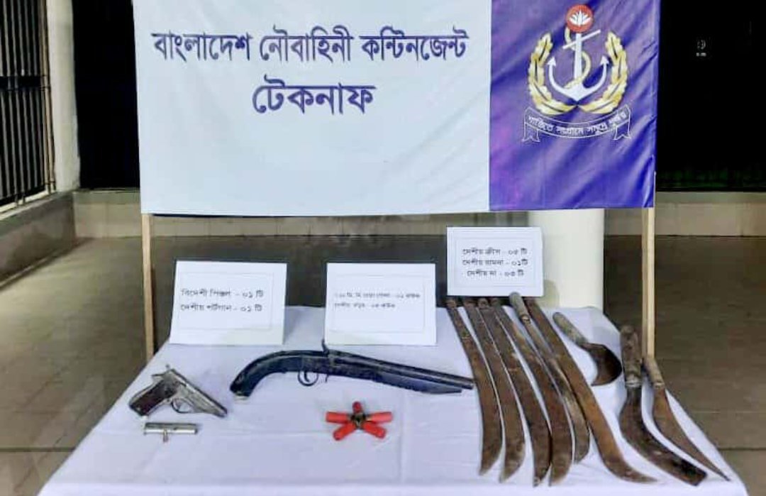 কক্সবাজারের টেকনাফে নৌবাহিনীর বিশেষ অভিযানে বিদেশি পিস্তল, দেশীয় অস্ত্র ও গুলিসহ বিপুল পরিমাণ আগ্নেয়াস্ত্র উদ্ধার করা হয়েছে। শুক্রবার (১০ অক্টোবর) রাতে টেকনাফ সদর ইউনিয়নের মৌলভীপাড়া এলাকায় গোপন সংবাদের ভিত্তিতে এই অভিযান চালানো হয়।