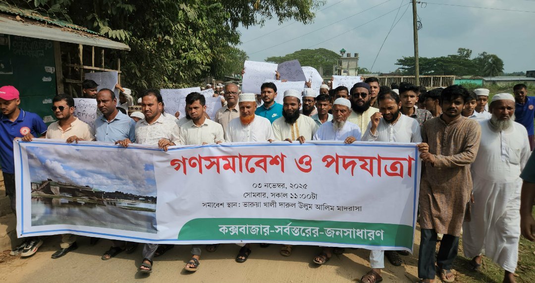 সংযোগ সেতুর কাজ শেষ করাসহ নানা দাবীতে ভারুয়াখালীতে গণসমাবেশ ও পদযাত্রা