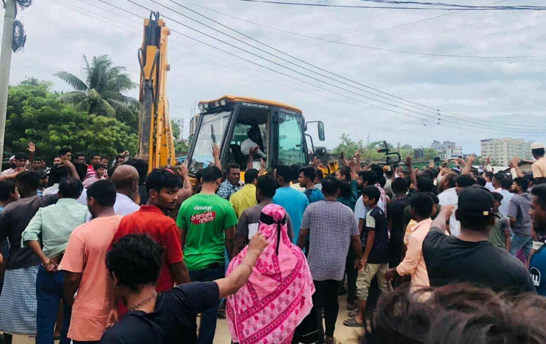 সকাল ১০ টার দিকে ভাঙচুর করা হয় উচ্ছেদ অভিযানে ব্যবহৃত একটি এস্কেভেটর, ঘটনাস্থলে উপস্থিত সেনাবাহিনী, পুলিশ সহ প্রশাসনের কর্মকতাদের ঘিরে রাখে বিক্ষোভকারীরা।