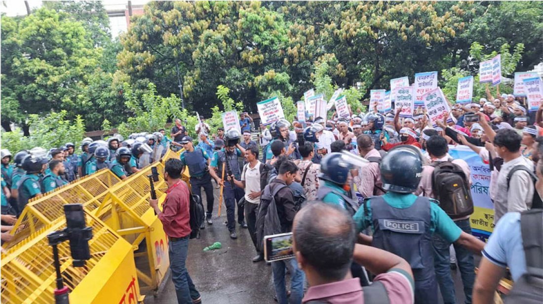 আন্দোলনকারীদের ছত্রভঙ্গ করতে জলকামান ও একটি সাউন্ড গ্রেনেড নিক্ষেপ করা হয়