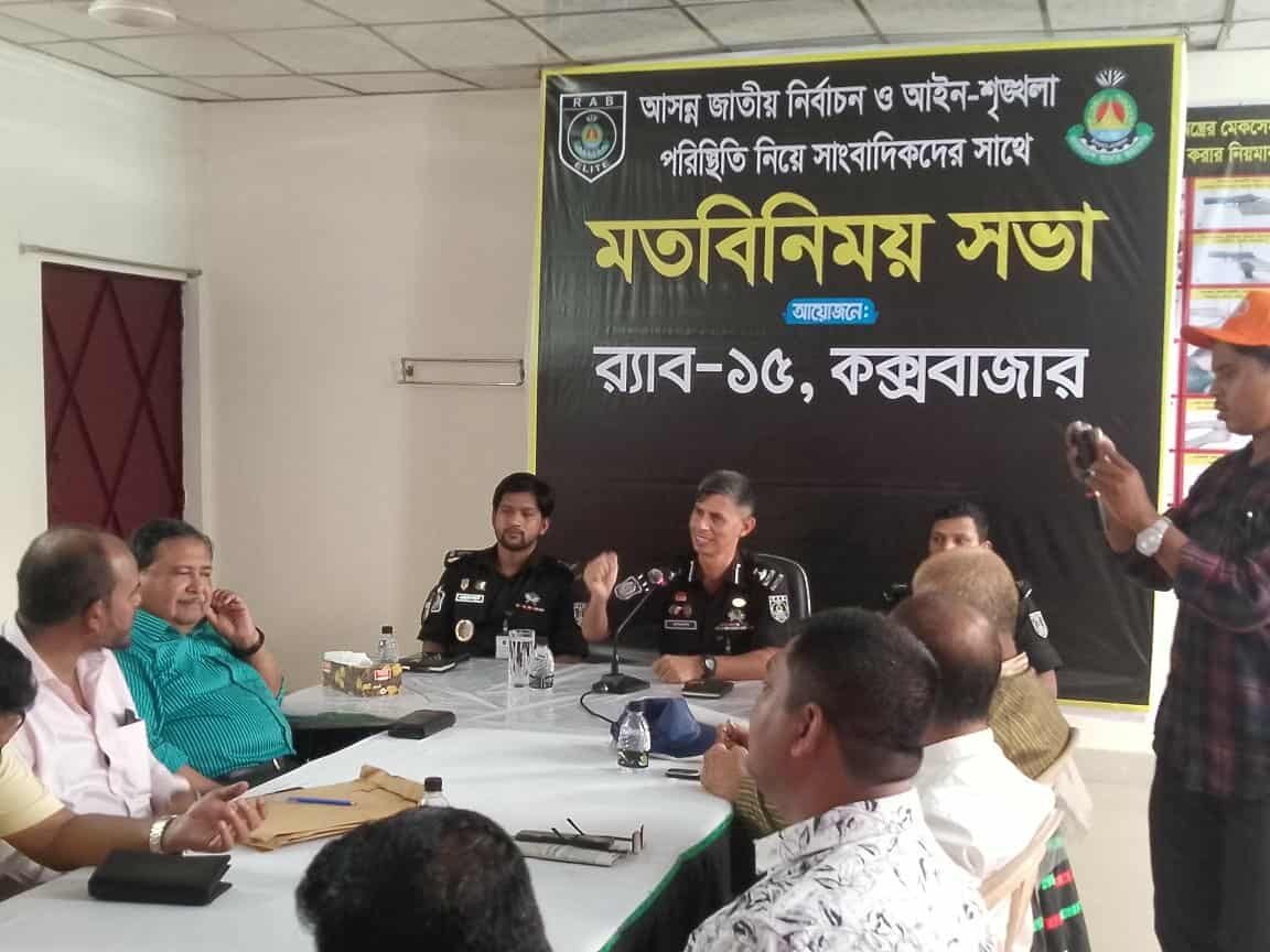 বুধবার দুপুরে র্যাব-১৫ কক্সবাজার ব্যাটালিয়ন সদরে এ মতবিনিময় সভা অনুষ্ঠিত হয়। সভায় কক্সবাজার প্রেস ক্লাবের সভাপতি মাহাবুবুর রহমানসহ ইলেক্ট্রনিক ও প্রিন্ট মিডিয়ার সাংবাদিকেরা উপস্থিত ছিলেন।