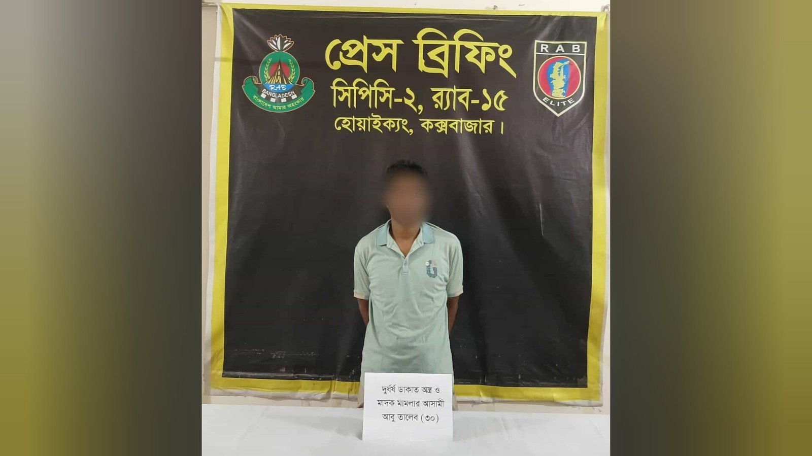 র্যাব-১৫’র সহকারী পরিচালক আ. ম. ফারুক প্রেরিত প্রেসবিজ্ঞপ্তিতে জানানো হয়,গোপন সংবাদের ভিত্তিতে র্যাব -১৫ এর সিপিসি ২ হোয়াইক্যং ক্যাম্পের একটি দল অভিযান চালিয়ে আবু তালেব কে গ্রেফতার করে।