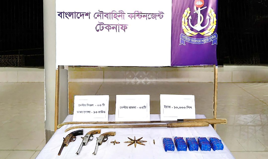 নৌবাহিনীর অভিযানে টেকনাফে আগ্নেয়াস্ত্র, গোলাবারুদ ও ইয়াবা উদ্ধার