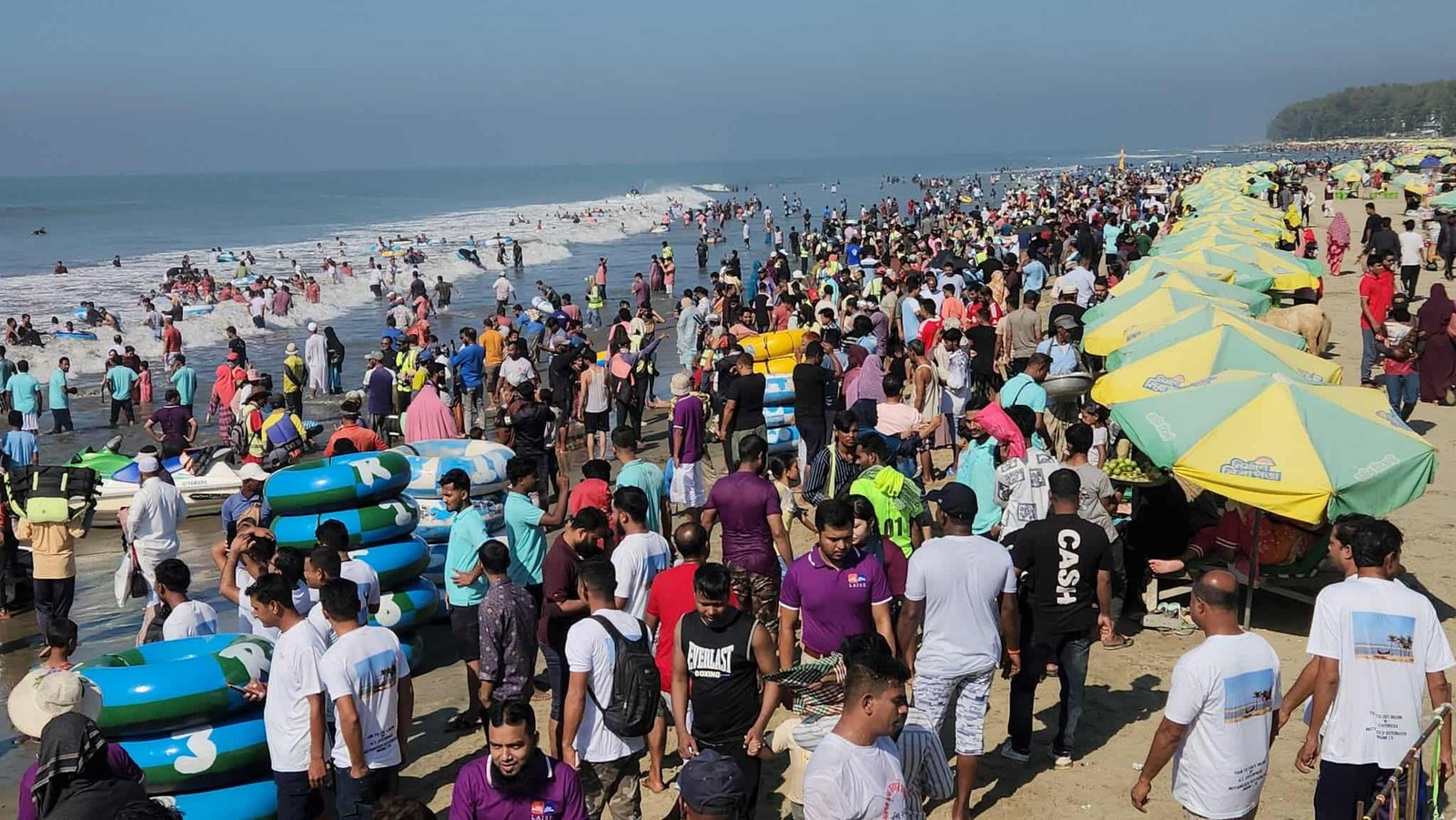 সাগরের নীল জলে সুনীল উচ্ছাসে মেতেছে পর্যটকেরা